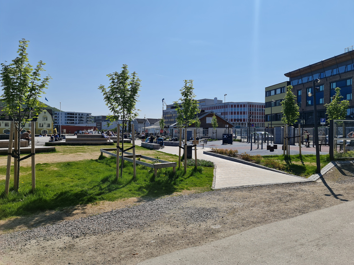 Sentrum av Harstad ligger rett ved havnen og havnepromenaden, en lang gågate med torget er egentlig sentrum. Det er flott i området, både i sentrum og langs havnepromenaden. De har forstått det - at de må utvikle og forbedre og utvikle. Både fasader, og bygninger - fra for noen år siden begynner det virkelig å ligne noe - nå begynner det å bli flott! Og de har laget en aktivitetspark ved havnen. Smart!