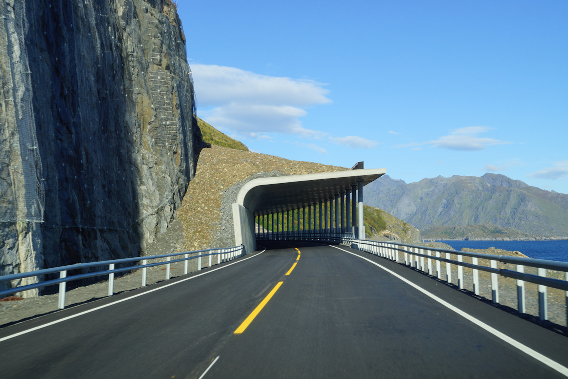 Det " kan " virke dramatisk at du skal kjøre utover Lofoten til sørspissen av Lofoten. Når du ser bilder der veien ligger i fjellfoten av ekstreme bratte fjell. Men - veien er sikker, og der den ikke er 100% sikker, er veien lagt i tunneller eller med ras-sikringer der du har egentlig tak over hodet når du kjører i mulige utsatte områder. Det Norske Vegvesen har sørget for at du skal få en sikker biltur - helt til du er ytterst på vest-spissen i Lofoten. Du skal komme sikkert både fram og hjem igjen.