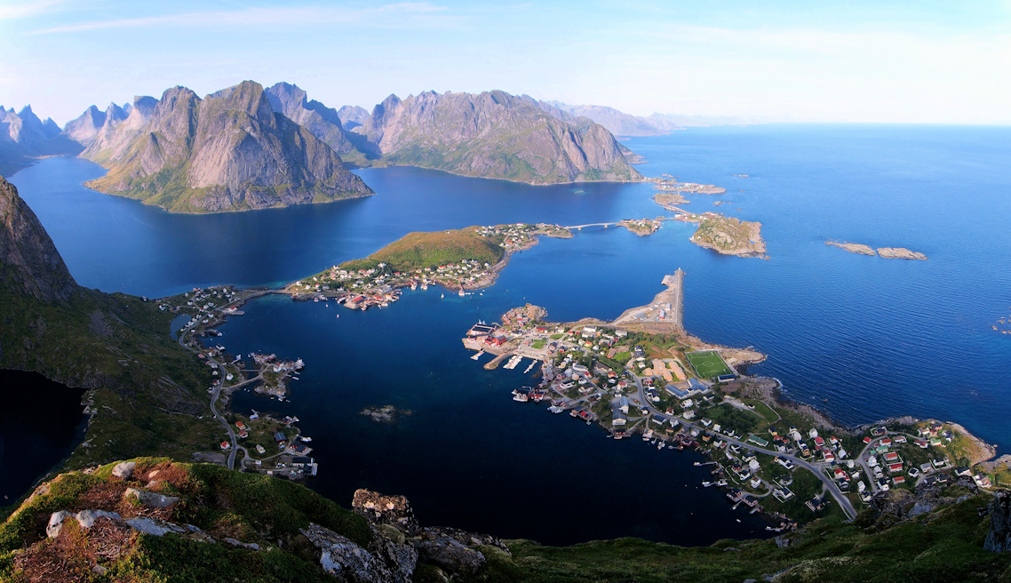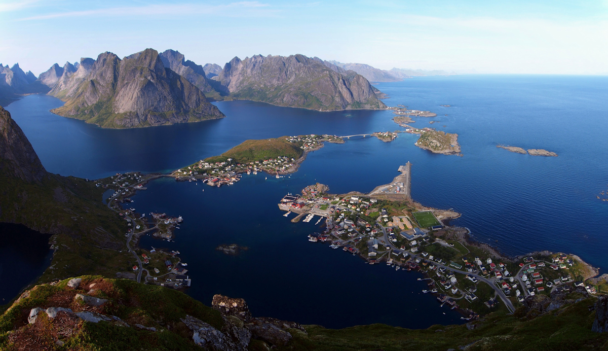 Alle de bebyggede øyene er sammenkoblet med broer. Omrammingen,- eller kan vi heller si naturens egne kulisser - med de vanvittige lofotfjellene på den ene siden, og storhavet rett ut på den andre. Kan det bli mere vakkert, ekstremt og magisk?