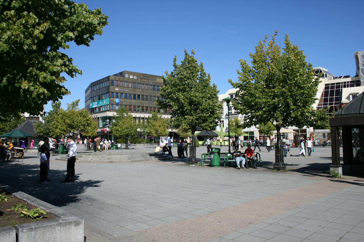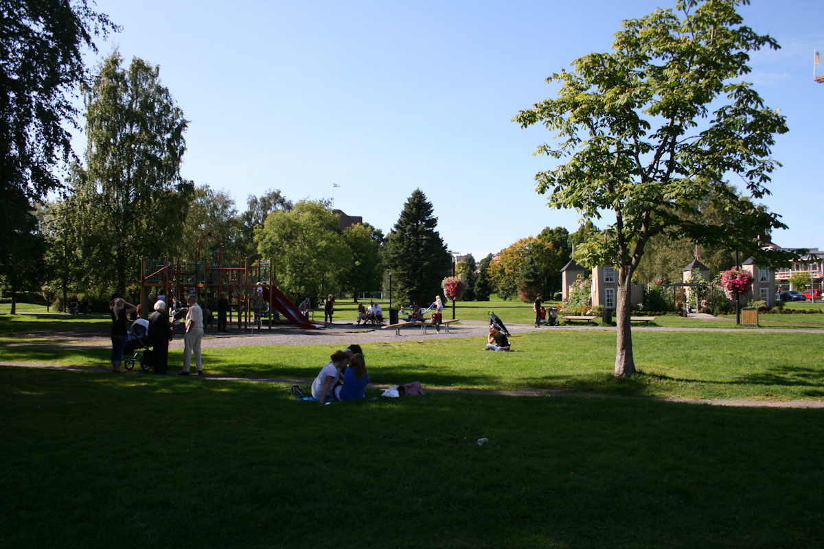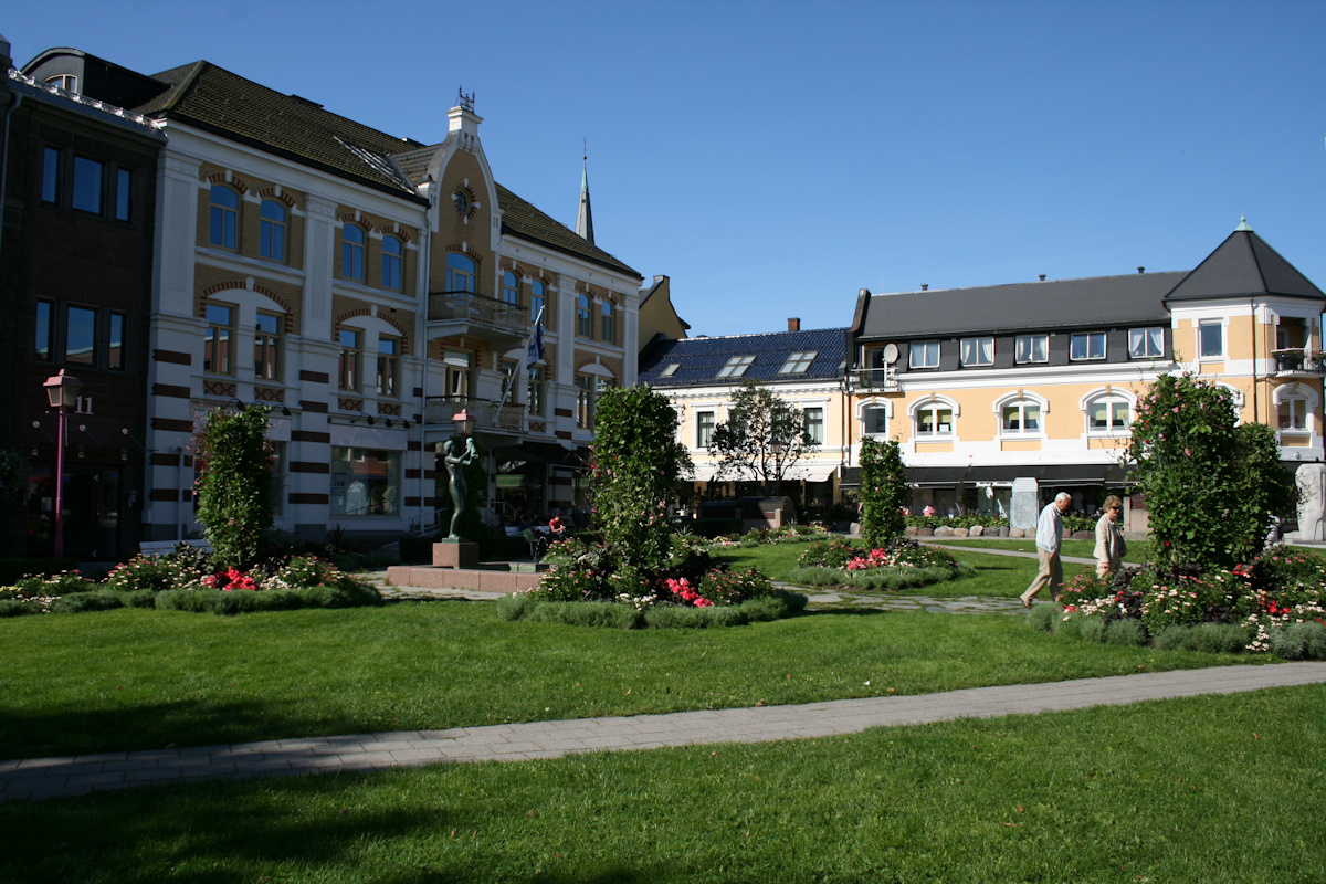 Sentrum og torget i byen ligger ca 350 m fra strandpromenaden, og når du vandrer opp mot sentrum får du en flott park ( badeparken ) på venstre side som grenser til torget. I parken er det foruten å være flere gangstier, trær og blomster i mange varianter, - en flott anlagt lekeplass for unger med mange apparater som garantert vil falle i smak, og fenge de aller fleste. Foruten denne parken finner du den lille men flotte "Byparken " som ligger langs Jernbaneallen 160 m fra torget.