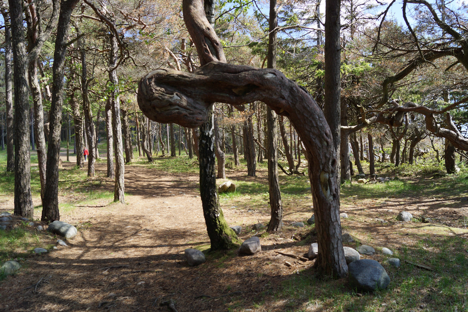 Arendal har endel flotte severdigheter å vise til for den som besøker stedet. Tyholmen har vi allerede nevnt, også Arendal gamle rådhus. Men byen har en attraksjon i nærheten på Trømøy som virkerlig er verdt et besøk. Nemlig Hove og Hoveskogen. Dette er egentlig et tur og friluftsområde som er vernet og endel av Raet nasjonalpark med flotte badestrender. Les mer på våre sider om det. Hoveskogen er bare litt magisk med alle sine trær med de mest rare og futuriske formasjoner - som Ailien her for eksempel. Her er også kilometervis med turstier i et nydelig område, godt tilrettelagt og god fremkommelighet for personer med både rullestol og barnevogn.