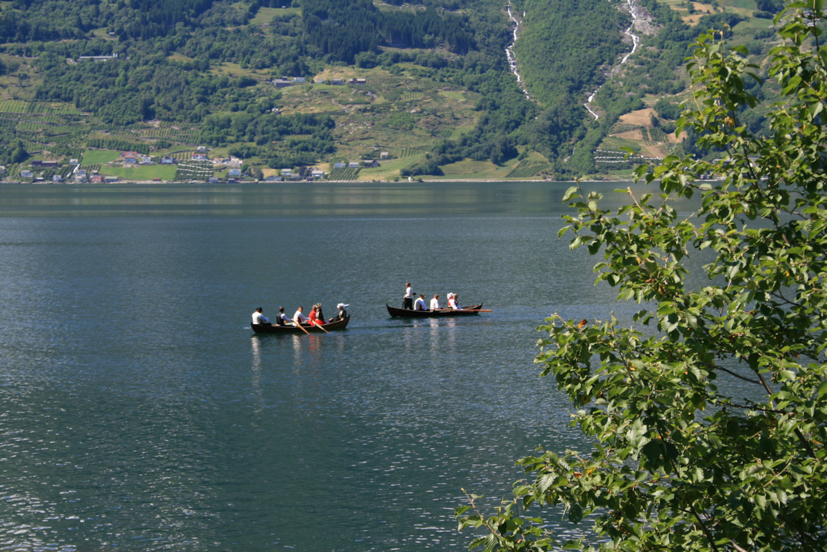 En annen ting Hardangerfjorden er kjent for er på grunn av det kjente maleriet " Brudeferden i Hardanger ". Her hadde vi sånn flaks at vi fikk fotografert en morderne versjon av Brudeferden i Hardanger.