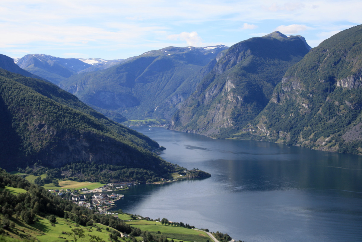 Nederst kan du beskue Flåmsdalens vakre litt flatere naturlandskaper, og Aurlandsfjorden som er en fjordarm av Sognefjorden. Her får du faktisk alt av natur som kan ta pusten fra deg på en og samme turen.