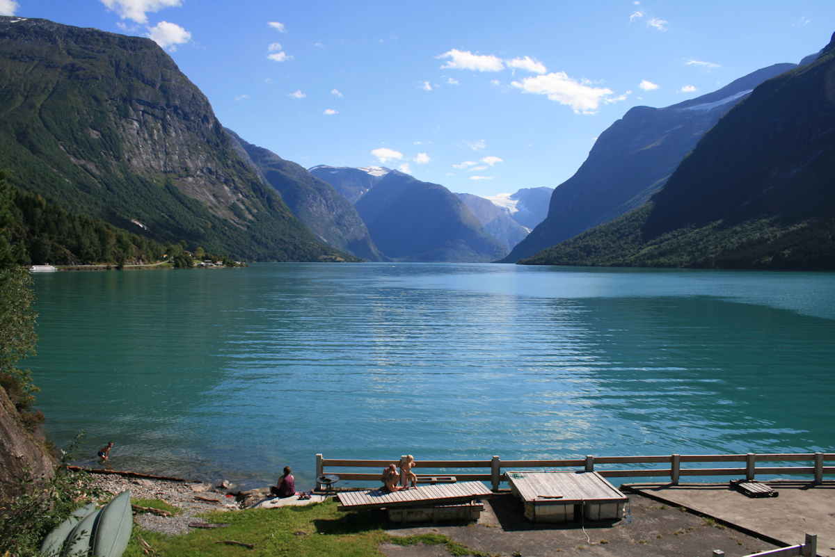 Fra du starter nede ved Loen å kjører innover mot Lodalen og Lovatnet langs Loelva som du får på høyre side, begynner du allerede å ane at dette blir spektakulært, og dette er bare begynnelsen.