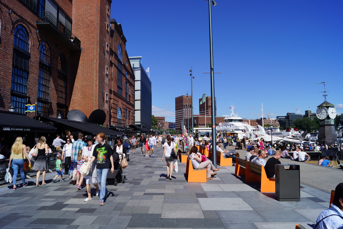 Populært og attraktivt uterom ved havnen i Oslo.