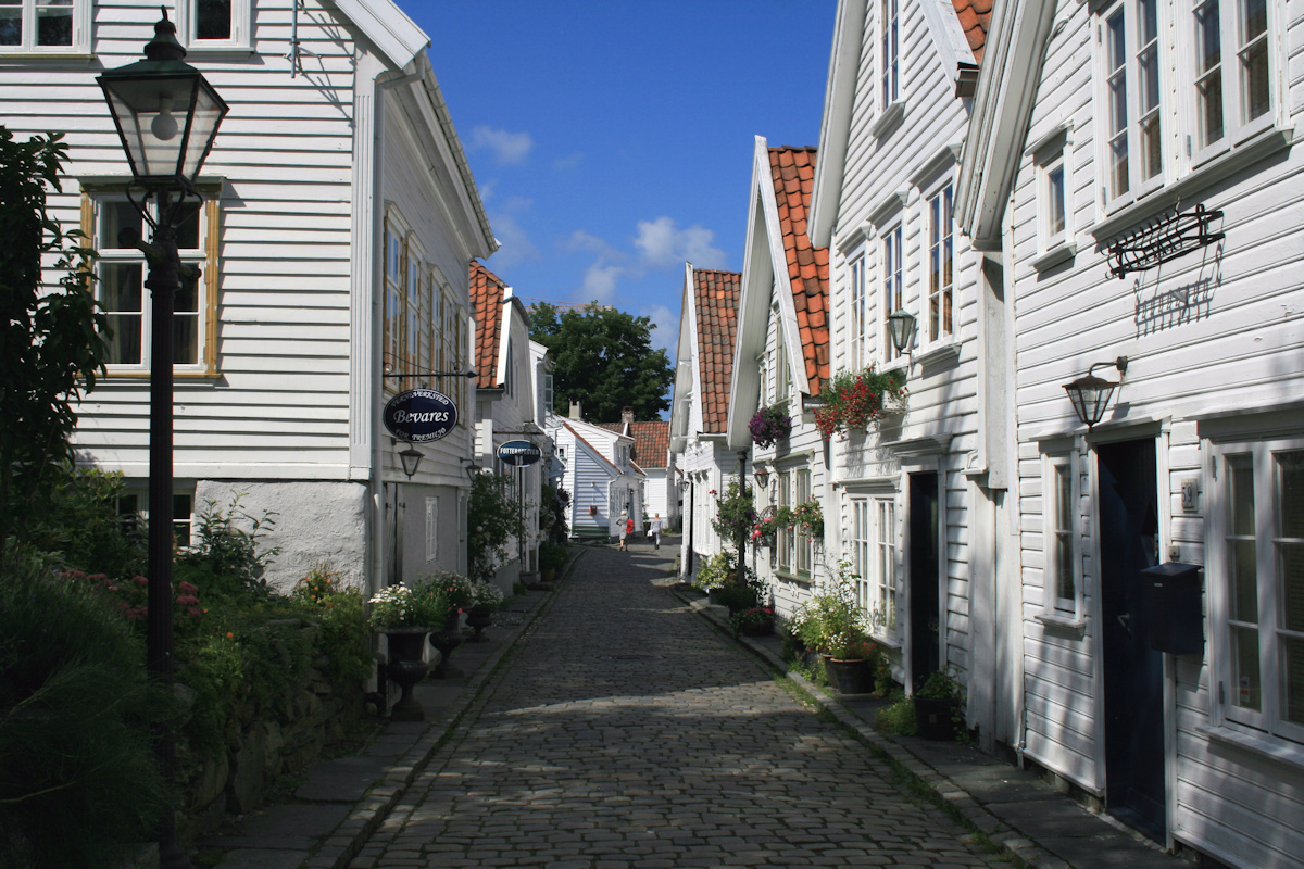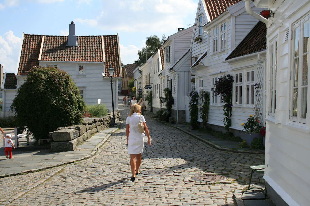 Tar du deg en tur til gamlebyen " Gamle Stavanger " - som virkerlig er å anbefale. Kan du vandre rundt i Europas best bevarte trehusbebyggelse, - med hvite små trehus i idylliske omgivelser med masse blomsterdekoreringer langs de trange gatene. Gamlebyen ligger på venstresiden av havnen ( Vågen ), litt oppe i åssiden.